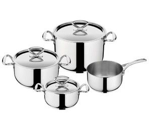 Stella da cuoco professionale in acciaio inossidabile di pezzi Set di pentole e padelle pronto a induzione – Set di pentole con tecnologia impact-bonded. Con le pentole in acciaio il metodo ideale per la cottura. Gli acciai impiegati nelle padelle e nelle pentole sono solitamente acciai inossidabili, in particolar modo austenitici. Quali sono i materiali più adatti per la cottura degli alimenti?